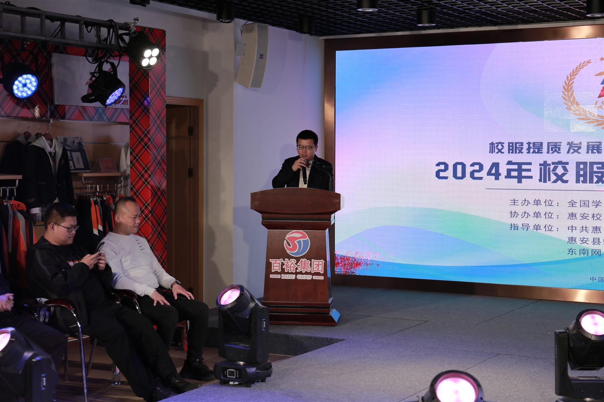 新品發(fā)布會(huì )在百裕集團總經(jīng)理蔡文河以“講好校服品牌故事,提升產(chǎn)業(yè)新質(zhì)生產(chǎn)力”為主題的講話(huà)下拉開(kāi)帷幕,蔡總通過(guò)分析當前全國校服市場(chǎng)的現狀以及國家政策文件等,分享了校服營(yíng)銷(xiāo)的經(jīng)驗。通過(guò)講述校服品牌故事,訴說(shuō)著(zhù)惠安龐大的校服產(chǎn)業(yè)鏈,堅定著(zhù)校服從業(yè)人員的信心。