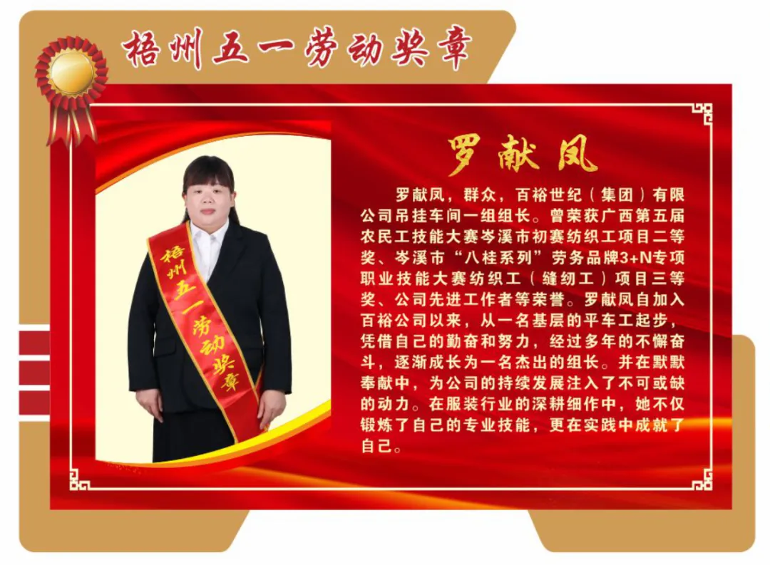 喜報(bào)丨百裕世紀(jì)(集團(tuán))羅獻(xiàn)鳳同志榮獲2024年“梧州五一勞動(dòng)獎(jiǎng)?wù)隆?/div>