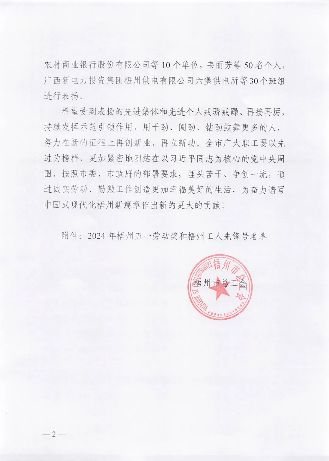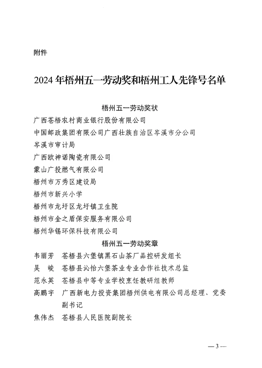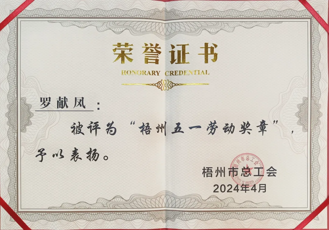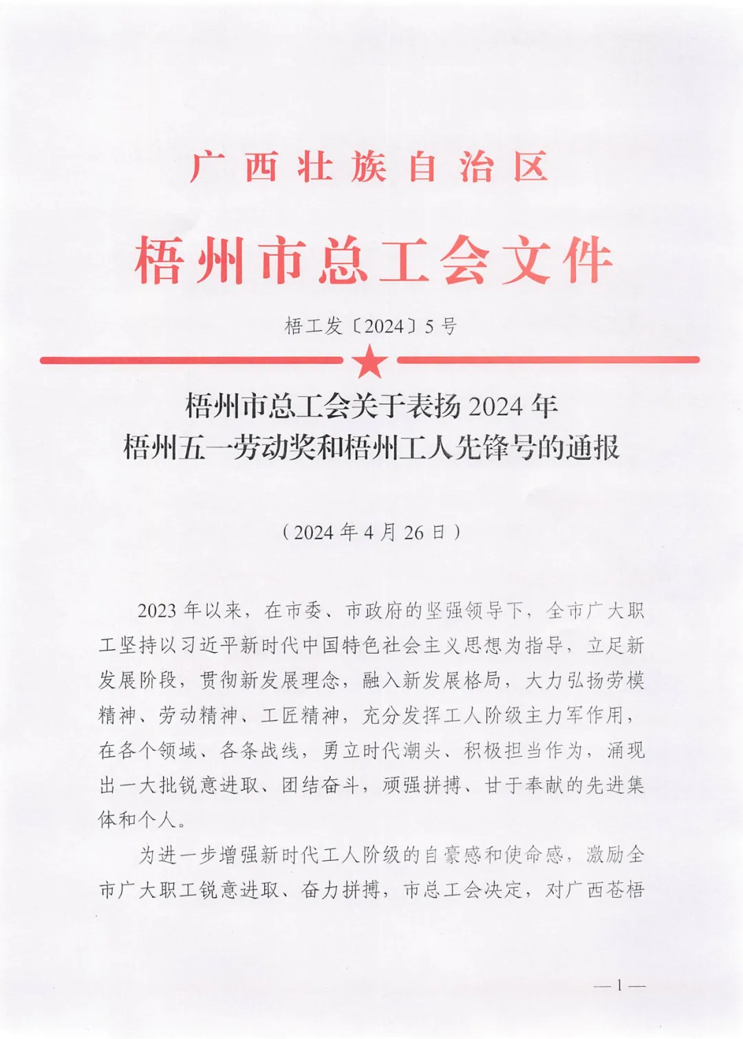 榮獲2024年“梧州五一勞動(dòng)獎(jiǎng)?wù)隆?/span>
