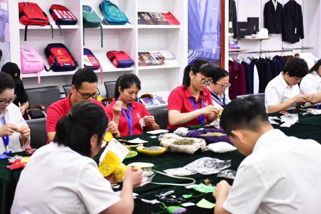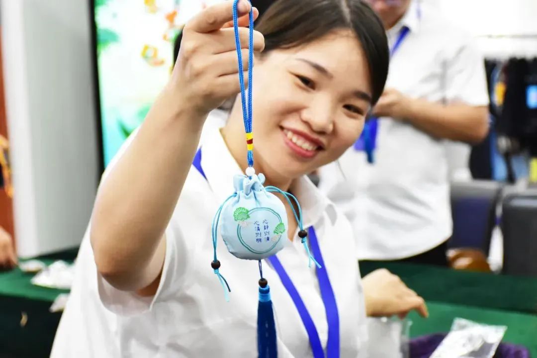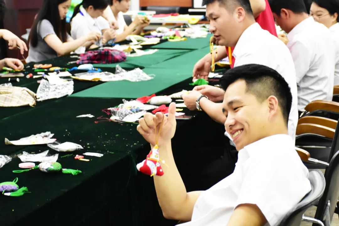整個(gè)活動(dòng)現場(chǎng)祥和喜樂(lè ),大家熱情高漲。伴隨著(zhù)歡聲笑語(yǔ),活動(dòng)步入了尾聲,一個(gè)個(gè)精致的荷包出現在大家的手中,大家競相展示成果,分享喜悅,佩戴香囊合影留念。