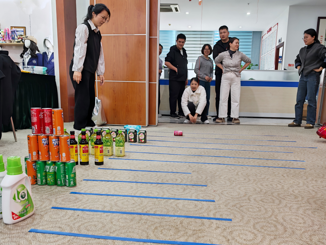 除了智力的角逐,現(xiàn)場(chǎng)還設(shè)置了游戲區(qū)。精美禮品整齊排列,員工們瞄準(zhǔn)自己心儀的物件進(jìn)行滾落投擲。大家不僅收獲了驚喜小禮物,更在歡聲笑語中釋放了工作壓力。