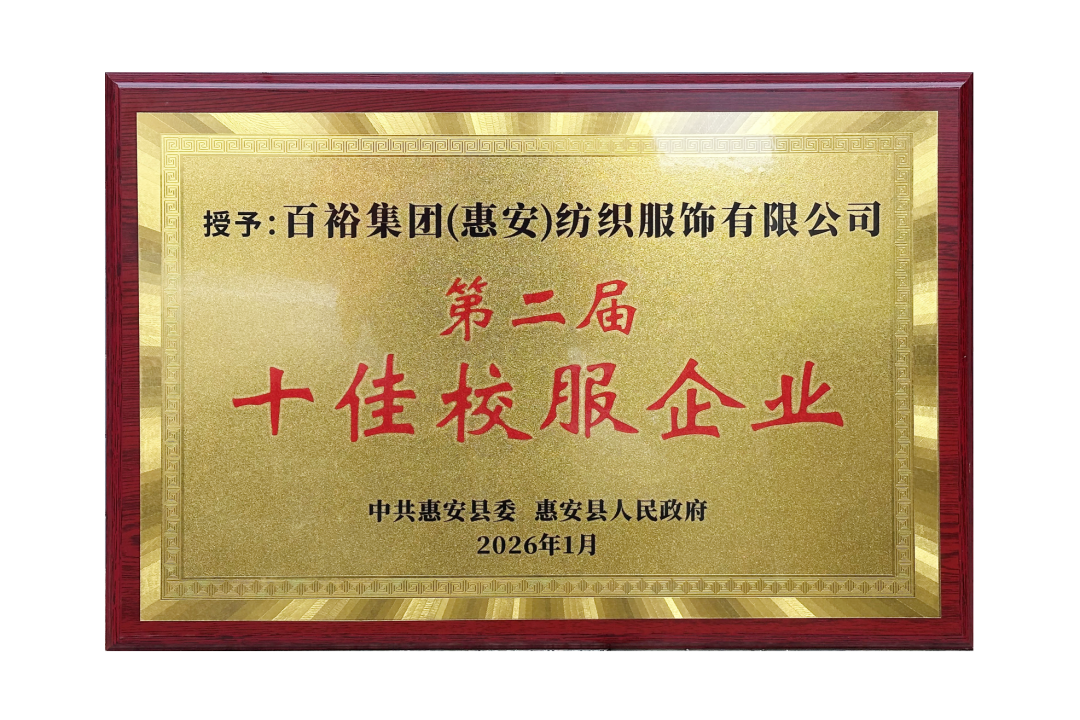 在此次活動(dòng)中,百裕集團(tuán)憑借卓越的研發(fā)實(shí)力、過硬的產(chǎn)品品質(zhì)與深厚的行業(yè)影響力,榮獲“第二屆十佳校服企業(yè)”稱號(hào) ,充分彰顯了行業(yè)與政府對(duì)集團(tuán)在校園服飾領(lǐng)域深耕細(xì)作的高度認(rèn)可。